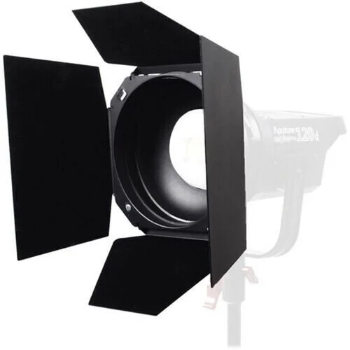 The Aputure Fresnel 2X with Barndoors enhances output and precision control, offering variable beam angles and focused light shaping for LS 120d and 300d series fixtures.